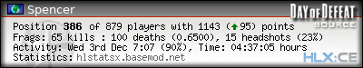 | Rank | Server | Kills | % | Ratio | Deaths | K:D | Headshots | Percentage of Headshots | % | HS:K |