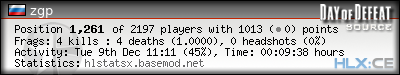 | Rank | Map | Kills | % | Ratio | Deaths | % | Ratio | K:D | Headshots | % | Ratio | HS:K |