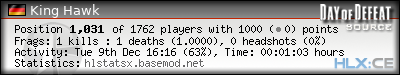 | Kills per Death: | 1.0000 (1.00*) | |