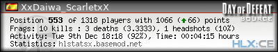 | Rank | Role | Joined | % | Ratio | Kills | Deaths | K:D |