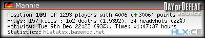 | Rank | Server | Kills | % | Ratio | Deaths | K:D | Headshots | Percentage of Headshots | % | HS:K |