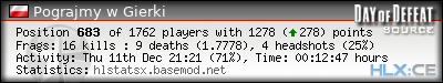 | Rank | Map | Kills | % | Ratio | Deaths | % | Ratio | K:D | Headshots | % | Ratio | HS:K |