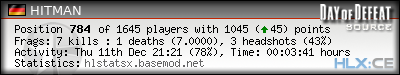 | Rank | Map | Kills | % | Ratio | Deaths | % | Ratio | K:D | Headshots | % | Ratio | HS:K |