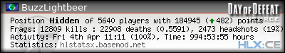 | Rank | Server | Kills | % | Ratio | Deaths | K:D | Headshots | Percentage of Headshots | % | HS:K |