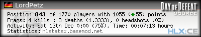 | Rank | Map | Kills | % | Ratio | Deaths | % | Ratio | K:D | Headshots | % | Ratio | HS:K |