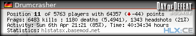 Rank | Server | Kills | % | Ratio | Deaths | K:D | Headshots | Percentage of Headshots | % | HS:K |