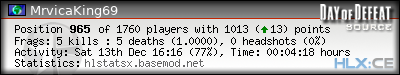| Rank | Map | Kills | % | Ratio | Deaths | % | Ratio | K:D | Headshots | % | Ratio | HS:K |