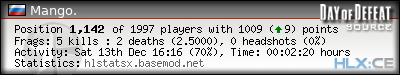 | Rank | Role | Joined | % | Ratio | Kills | Deaths | K:D |