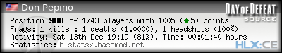 | Rank | Map | Kills | % | Ratio | Deaths | % | Ratio | K:D | Headshots | % | Ratio | HS:K |