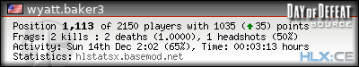 | Rank | Map | Kills | % | Ratio | Deaths | % | Ratio | K:D | Headshots | % | Ratio | HS:K |