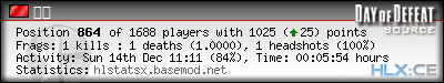 | Rank | Map | Kills | % | Ratio | Deaths | % | Ratio | K:D | Headshots | % | Ratio | HS:K |