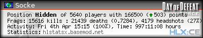 | Rank | Server | Kills | % | Ratio | Deaths | K:D | Headshots | Percentage of Headshots | % | HS:K |