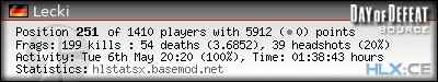 | Rank | Victim | Kills | % | Ratio | Deaths | % | Ratio | K:D | Headshots | % | Ratio | HS:K |