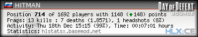 | Rank | Map | Kills | % | Ratio | Deaths | % | Ratio | K:D | Headshots | % | Ratio | HS:K |