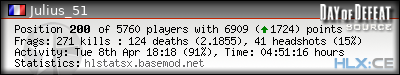 Rank | Server | Kills | % | Ratio | Deaths | K:D | Headshots | Percentage of Headshots | % | HS:K |