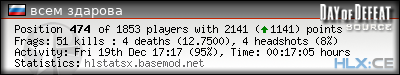 | 1 | »» 24/7 Sniper Server // by www.BASEMOD.net [EU] | 51 | 100.00% | 4 | 12.7500 | 4 | 100.00% | 0.0784 |