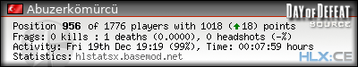 | Rank | Map | Kills | % | Ratio | Deaths | % | Ratio | K:D | Headshots | % | Ratio | HS:K |