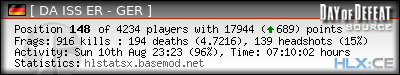1 | »» 24/7 Sniper Server // by www.BASEMOD.net [EU] | 138 | 52.47% | 25 | 5.5200 | 11 | 36.67% | 0.0797 | ||
