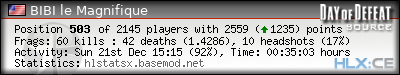 | Rank | Server | Kills | % | Ratio | Deaths | K:D | Headshots | Percentage of Headshots | % | HS:K |