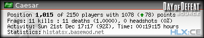 | Rank | Map | Kills | % | Ratio | Deaths | % | Ratio | K:D | Headshots | % | Ratio | HS:K |