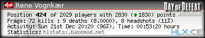 | Rank | Server | Kills | % | Ratio | Deaths | K:D | Headshots | Percentage of Headshots | % | HS:K |