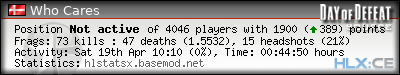 Headshots per Kill: | 0.1789 (0.0909*) | |