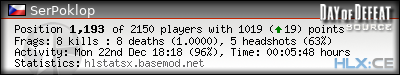 | Headshots per Kill: | 0.6250 (0.6250*) | |