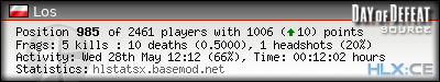 | Rank | Name | Time | Last Use | Kills | Deaths | K:D | Headshots | HS:K | Suicides | Accuracy |