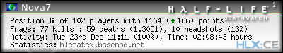 | Rank | Server | Kills | % | Ratio | Deaths | K:D | Headshots | Percentage of Headshots | % | HS:K |