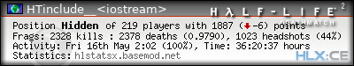 | Rank | Server | Kills | % | Ratio | Deaths | K:D | Headshots | Percentage of Headshots | % | HS:K |