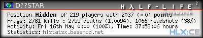 | Rank | Server | Kills | % | Ratio | Deaths | K:D | Headshots | Percentage of Headshots | % | HS:K |