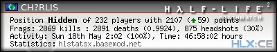| Rank | Server | Kills | % | Ratio | Deaths | K:D | Headshots | Percentage of Headshots | % | HS:K |