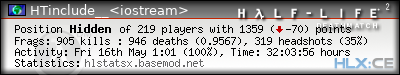 | Rank | Server | Kills | % | Ratio | Deaths | K:D | Headshots | Percentage of Headshots | % | HS:K |