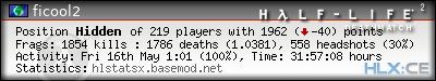 | Rank | Server | Kills | % | Ratio | Deaths | K:D | Headshots | Percentage of Headshots | % | HS:K |