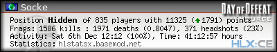 | Rank | Server | Kills | % | Ratio | Deaths | K:D | Headshots | Percentage of Headshots | % | HS:K |