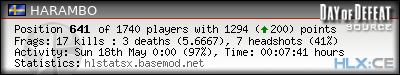 Rank | Server | Kills | % | Ratio | Deaths | K:D | Headshots | Percentage of Headshots | % | HS:K |