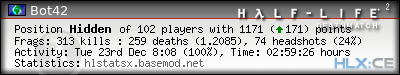 | Headshots per Kill: | 0.2105 (0.2105*) | |