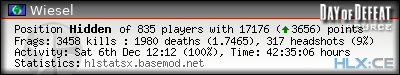 | Rank | Server | Kills | % | Ratio | Deaths | K:D | Headshots | Percentage of Headshots | % | HS:K |