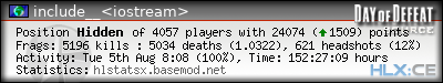 | Rank | Server | Kills | % | Ratio | Deaths | K:D | Headshots | Percentage of Headshots | % | HS:K |