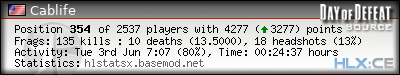 Rank | Server | Kills | % | Ratio | Deaths | K:D | Headshots | Percentage of Headshots | % | HS:K |