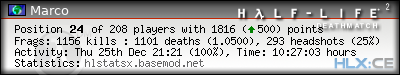 | Rank | Server | Kills | % | Ratio | Deaths | K:D | Headshots | Percentage of Headshots | % | HS:K |