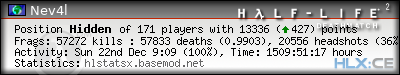 | Rank | Server | Kills | % | Ratio | Deaths | K:D | Headshots | Percentage of Headshots | % | HS:K |