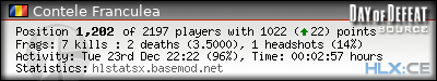 | Rank | Map | Kills | % | Ratio | Deaths | % | Ratio | K:D | Headshots | % | Ratio | HS:K |