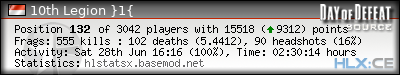 Rank | Server | Kills | % | Ratio | Deaths | K:D | Headshots | Percentage of Headshots | % | HS:K |