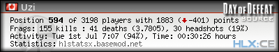 | Rank | Map | Kills | % | Ratio | Deaths | % | Ratio | K:D | Headshots | % | Ratio | HS:K |