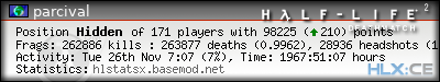 | Rank | Server | Kills | % | Ratio | Deaths | K:D | Headshots | Percentage of Headshots | % | HS:K |