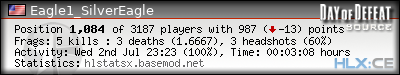 Rank | Server | Kills | % | Ratio | Deaths | K:D | Headshots | Percentage of Headshots | % | HS:K |