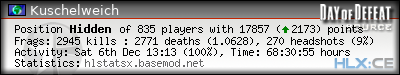| Rank | Victim | Kills | % | Ratio | Deaths | % | Ratio | K:D | Headshots | % | Ratio | HS:K |