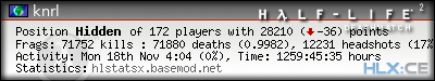 | Rank | Map | Kills | % | Ratio | Deaths | % | Ratio | K:D | Headshots | % | Ratio | HS:K |