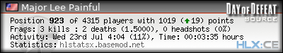 Headshots per Kill: | 0.1957 (0.3846*) | |